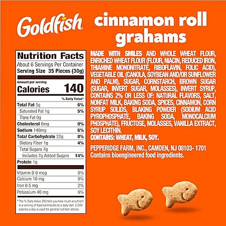 [S&S, AC] $3.30 | 2 × 6.6-Oz Goldfish Grahams Baked Snack Crackers (Cinnamon Roll) ($1.65 each) at Amazon