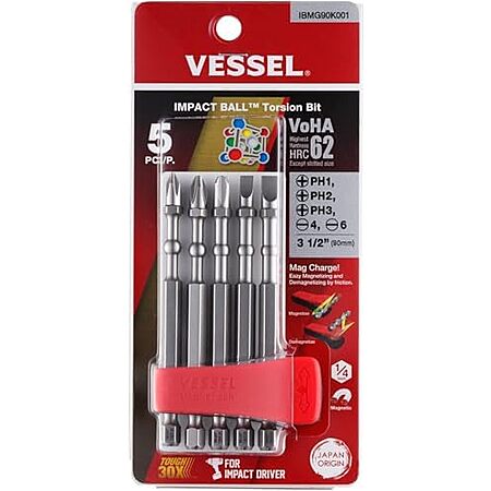 $10.44* | 5-Piece VESSEL Impact Ball Torsion Bit with Mag Charge Holder Set at Amazon