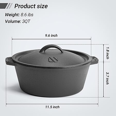 3-Qt Northriver Casting Pre-Seasoned Cast Iron Dutch Oven w/ Lid $14.24 + Free Shipping w/ Prime or on $35+