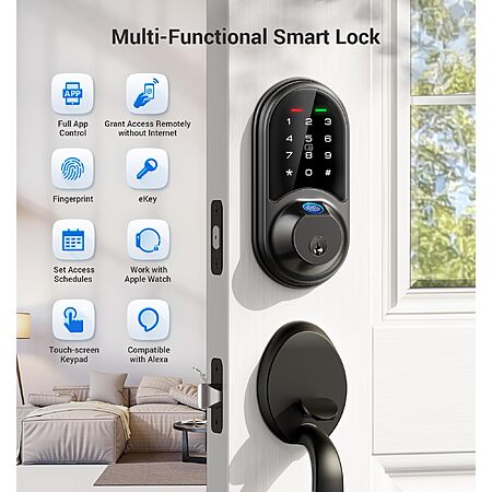 Veise RZ07 Fingerprint Smart Lock, 7-in-1 Smart Locks for Front Door, Keyless Entry Door Lock with App Control, Biometric Electronic Touchscreen Keypad Deadbolt $73.67