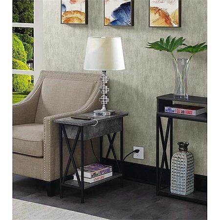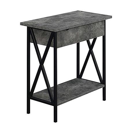 Convenience Concepts Tucson Flip Top End Table with Charging Station 23.75" - Modern Living Room Table with Storage Shelf, Side Table Side Table, Cement/Black $39.59
