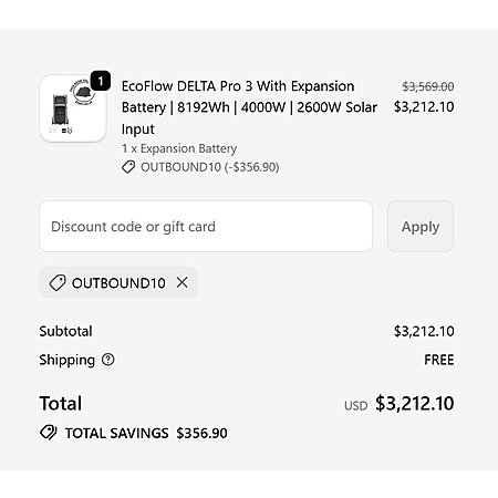 Outbound Power (authorized EF reseller) has Delta Pro 3 + Expansion battery (8kWh total) +