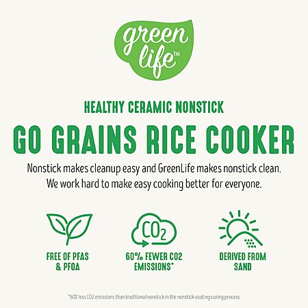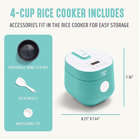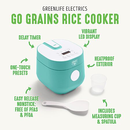 GreenLife Digital Rice Cooker, 2-Cups Uncooked/4-Cups Cooked, Removable Nonstick Ceramic PFAS-Free Pot, One-Touch Presets, 1.5 QT, Turquoise $33.30