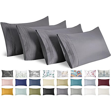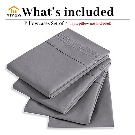 YIYEA Pillow Cases Queen Size Set of 4, Ultra Soft 1800TC Hotel Quality Double Brushed Microfiber (20"x30", Medium Grey or Blue) - $6.99
