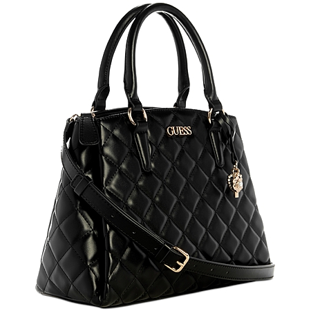 Macy's has GUESS Tinsley Medium Quilted Three-Compartment Satchel in black pure leather for $51.75. Shipping is free for orders over $25.