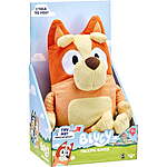 Bring the fun and imaginative play of Bluey home with the Talking Bingo 12" Plush! Bingo is a ball of energy and loves playing with her family, especially with her big sister Bluey. Press Bingo's tummy to hear 9 fun phrases from the Bluey TV show. You can even sing along with Bingo to the Bluey theme song! Bingo is the perfect size for cuddles. So soft to hold and made with soft deluxe fabrics and detailed stitching, this talking plush doubles as a soft and cuddly toy for show time or storytime. Collect all of Bluey's plush friends and create your own Bluey adventures! Say Hello To Talking Bingo - Talking Bingo is not only a large and adorable plush that kids will want to hug and take everywhere, she is also a cuddly pup who loves to talk! Press Bingo's tummy to hear her say some of your favorite phrases from the Bluey TV show. She has 9 different fun phrases. Sing Along To Bluey's Song - You can even sing along with Bingo to the Bluey theme song! Press her tummy and hear it play. How good are you at Musical Statues? Play with Bingo to find out! Bingo Loves Cuddles - At 12"" tall, Bingo is the perfect size for cuddles. So soft to hold and made with soft deluxe fabrics and detailed stitching, this talking plush doubles as a soft and cuddly toy for show time or storytime. Talking Bingo is made with premium soft deluxe fabrics and detailed stitching. Meet Bluey! - Bluey is a loveable, six-year-old Blue Heeler dog, who lives with her mum Chilli, dad Bandit, and little sister Bingo. She loves to turn everyday family life into endless, playful adventures. Bring the fun and imaginative play home with the Bluey toy line and recreate some of the most memorable moments from the show!