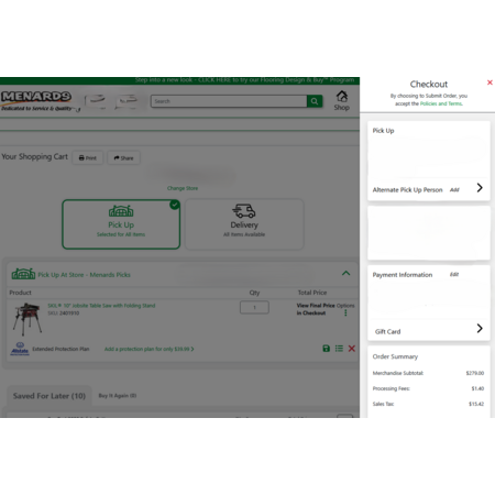 15% off (mostly rebate) for current flyer (11th-24th), but the discount on this table saw does not require rebate, and the final price will be shown at checkout.