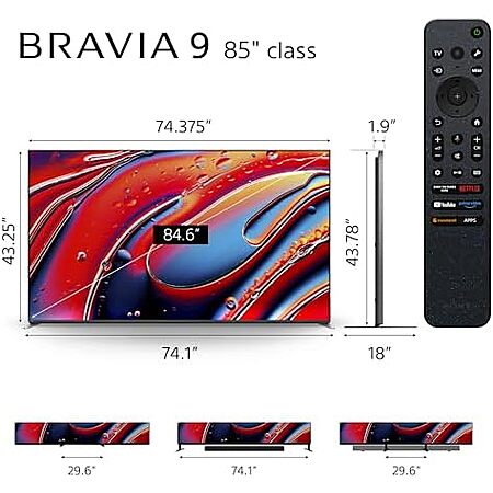 $2998 | 85″ Sony Mini LED QLED 4K Ultra HD TV BRAVIA 9 Smart Google TV (K-85XR90) at Amazon