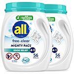[S&S] $19.34 | 2-Pack 56-Count all Mighty Pacs Laundry Detergent at Amazon