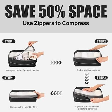 [Prime] $9.49* | 6-Piece Kookoomia Compression Packing Cubes for Travel (Black) at Amazon