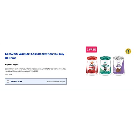$2 WM Cash + 10x Yoplait Original Low Fat Harvest Peach or Strawberry Yogurt Cup, Made with Real Fruit, 6 oz $5.8