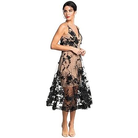 $59 | Dress the Population Womens Audrey Midi Plunging Dress (Medium) at Amazon