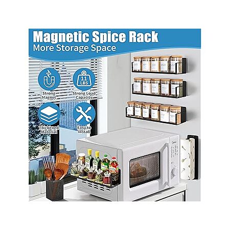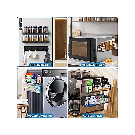 - Versatile Magnetic Shelves: Can be used on any magnetic surface—refrigerator, microwave, washing machine, metal file cabinet, etc. Reusable and safe for surfaces.