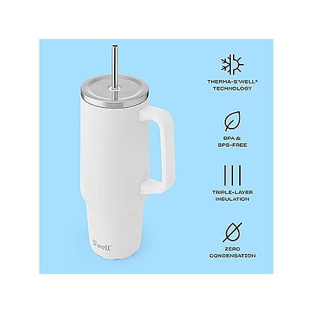 $14.99*:S’well Recycled Stainless Steel Tumbler XL, 40oz with Straw & Handle, Moonstone
