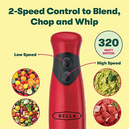 Amazon has BELLA 2-Speed Hand Immersion Blender with Whisk Attachment (Red) for $11.94. Shipping is free with Prime or on $35+ orders.