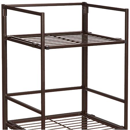 - Made of durable steel with multiple shelving tiers