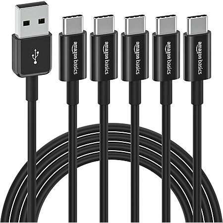 Model: Amazon Basics 5-Pack USB-C to USB-A 2.0 Fast Charger Cable, 480Mbps Speed, USB-IF Certified, for Apple iPhone 15, iPad, Samsung Galaxy, Tablets, Laptops, 6 Foot, Black