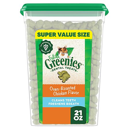Greenies Feline Veterinarian-Recommended Adult Natural Dental Cat Treats, Oven Roasted Chicken Flavor, 21 oz. Tub $15.85 or less CLIP Q S&S YMMV
