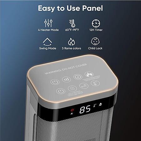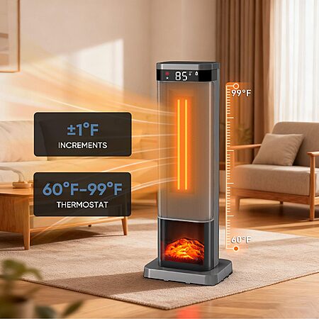 • Safety Features – Tip-over protection, child lock, and adjustable thermostat (60°F–99°F).