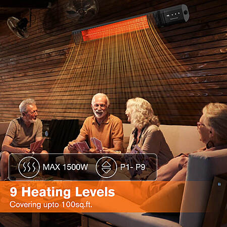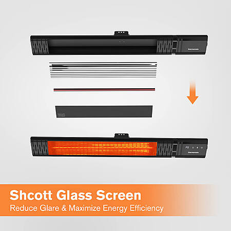 - 1500W gold-halogen heating element + Schott Glass low-glare screen — reduces harsh glare while maximizing infrared heat efficiency, providing a soft amber glow