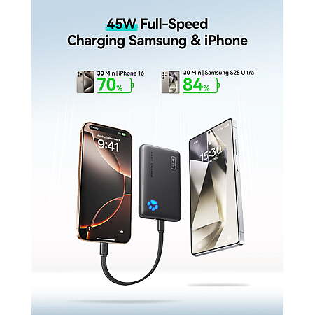 | Product Description: | The INIU Slim Portable Charger is a versatile and travel-friendly power bank designed to keep your devices fully charged on the go. With a compact 10000mAh capacity and 45W fast charging capabilities, it supports USB-C in-and-out ports for convenient charging. The lanyard USB-C cable eliminates the need to carry extra cords, making it perfect for travelers. Compatible with a wide range of devices including iPhone 16, 15, Samsung S22, S21, and Google phones, this sleek power bank is your ultimate external charger solution for a hassle-free journey. From INIU--the SAFE Fast Charge Pro: Experience the safest charging with over 38 million global users. At INIU, we use only the highest-grade materials, so we do have the confidence to provide an industry-leading 3-year warranty. 45W Full-Speed Charging Newest iPhone 16 & Samsung S24: This power bank delivers up to 45W output and supports PD, QC, and other fast-charging protocols. In just 25 minutes, it powers your iPhone 16 to 63% and charges your Samsung S24 Ultra to an impressive 73%. Industry First-Seen High-Density TinyCell: INIU's latest 10,000mAh power bank features the market's first high-density cell, making it 30% smaller and 15% lighter than others with the same capacity. Lanyard USB-C Cable Ready: Equipped with INIU's exclusive nylon braided USB-C to C lanyard, this cable is far more durable than plastic alternatives. Never worry about forgetting your charging cable again—charge and recharge with just one convenient cable. Charge 3 Devices Together: Unlike most devices on the market, our power bank features 2 USB-C ports and 1 USB-A port, allowing charge 3 devices at once in emergencies. What You Get: INIU 10000mAh portable charger*1, lanyard USB-C Cable*1, user manual*1, 30-day money-back guarantee, INIU industry-leading 3-year warranty and lifetime technical support. |