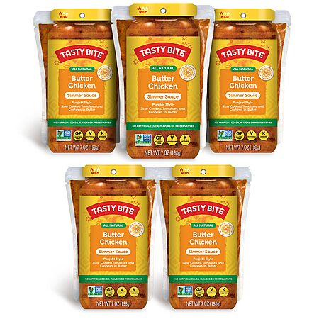 Tasty Bite Punjabi Style Butter Chicken Simmer Sauce, 7-Ounce 5-Pack, 3-4 Servings, Vegetarian, Tomatoes & Cashews in Butter~$12.72 @ Amazon Resale