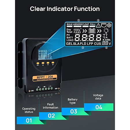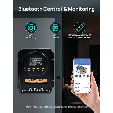 ECO-WORTHY 20A MPPT Solar Charge Controller 12V/24V w/ Bluetooth & App Monitoring $57 + Free Shipping