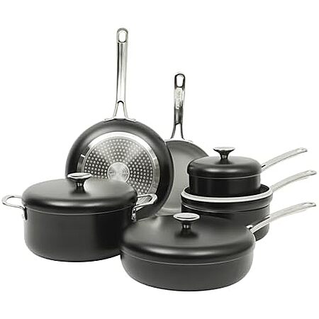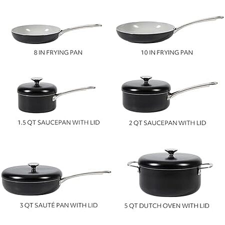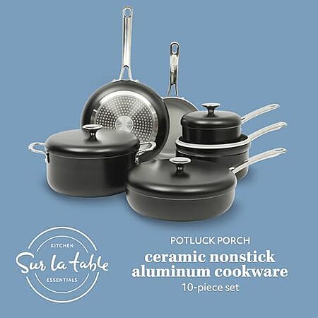 Model: Sur La Table Kitchen Essentials Potluck Porch 10 Piece PFA Free Ceramic Non stick Interior Forged Aluminum Cookware Pots and Pans Set W/Aluminum Lids - Black - Induction Compatible
