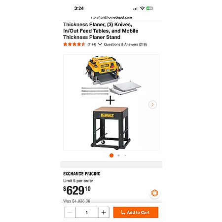 This planer is usually 500-600. 600 if you include the side tables. The stand is usually 100.