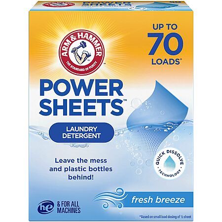 ARM & HAMMER Power Sheets Laundry Detergent, Fresh Breeze Scent, No Mess, Lightweight and Travel-Friendly, 35 Count, Up to 70 Small Loads~$7.21 With S&S @ Amazon