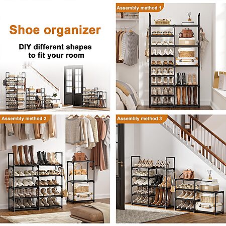 Zionyea via Amazon [amazon.com] has 9-Tier WOWLIVE Shoe Storage Organizer Rack (Black, fits 30-35 pairs, 33.2"D x 9.84"W x 60.3"H) on sale for $26.98. Shipping is free w/ Prime or on orders $35+.