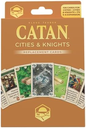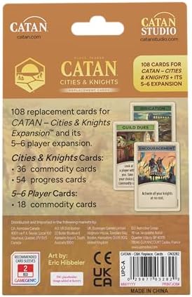 Model: CATAN Cities & Knights Card Accessory (6th Edition) Complete Replacement Set with 36 Commodity Cards & 54 Progress Cards, Made Studio