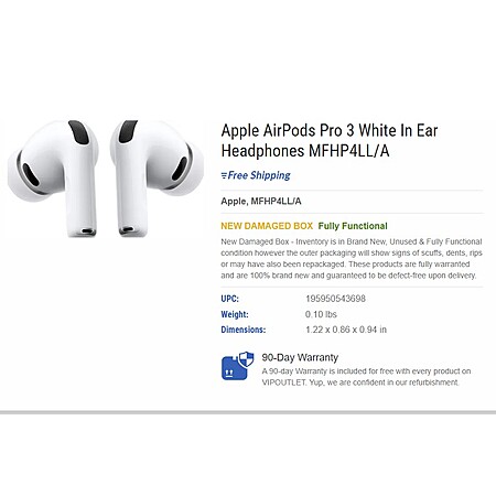 Apple AirPods Pro 3 White In Ear Headphones MFHP4LL/A Open box $189.90