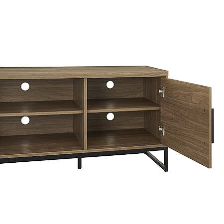 - Stylish Design: This TV stand features a modern industrial design with a Canyon Walnut finish, making it a versatile accent console suitable for various home settings and styles.