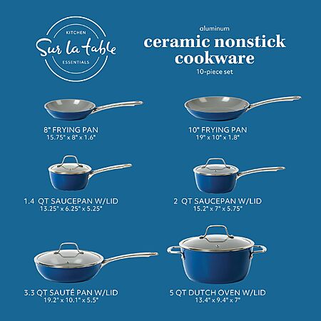 10-Piece Sur La Table Kitchen Essentials Titanium Ceramic Nonstick Aluminum Cookware Set (Blue) $63.55 + Free Shipping