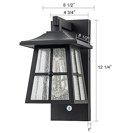 - The outdoor wall light is W 6.5in x E 8.5in x H 12.25in, the backplate is W 4.75in x E 1in x H 12.25in.