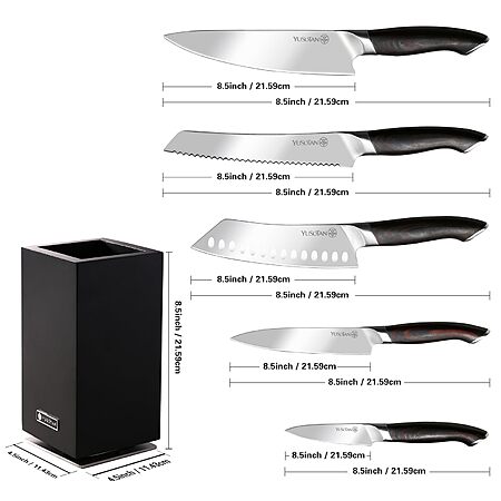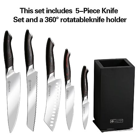 5-Piece YUSOTAN Knife Set w/ 360° Rotating Magnetic Wooden Holder $14 + Free Shipping w/ Prime or on $35+