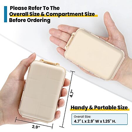 FOLDING DESIGN & SAVES SPACE - Compact design makes it easy to carry. You can easily fit them in your pocket, tote bag, suitcase, car storage compartment, office desk or drawer, etc., Make it be a palm pharmacy, always accompanied by you within reach! A perfect personal or family, work, out door or travel essentials pill organizer dispenser.