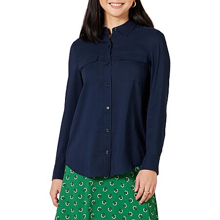 $5 Small Amazon Essentials Women's Georgette Long Sleeve Pockets Shirt (Navy, Small only)