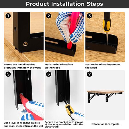 - 【Durable】: Made of cold-rolled steel with a thickened design, these foldable shelf brackets are sturdy and durable, with a maximum load capacity of 60 kg. The polished surface makes them easy to use.
