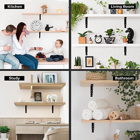 - 【Universal Size】: The 16-inch foldable shelf brackets are a common size on the market, eliminating the problem of smaller sizes with insufficient load-bearing capacity. They can support up to 60 kg. They are commonly used for adding shelving in the kitchen, increasing storage space in the bedroom or living room, and can also be used as a simple desk in the study.