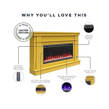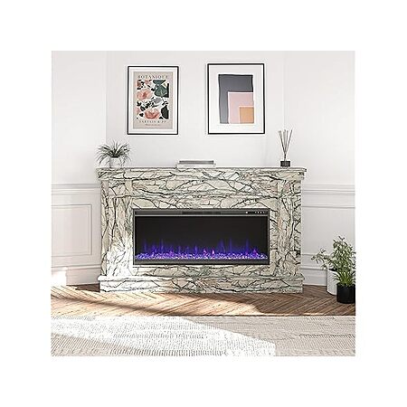64" Novogratz Waverly Mantel w/ 42" Linear Electric Fireplace & Crystal Ember Bed (Onyx Marble) $164.99 + Free Shipping w/ Prime