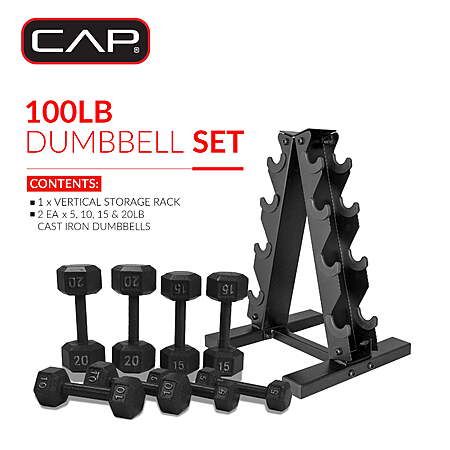 Cap Barbell 100 lb Cast Iron Hex Dumbbell Weight Set with Rack, Black $129