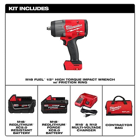 Milwaukee M18 FUEL 18V Lith-Ion Brushless 1/2 in. Impact Wrench Kit w/One 5.0 Ah Battery & FORGE XC 8.0 Ah Battery Pack $369