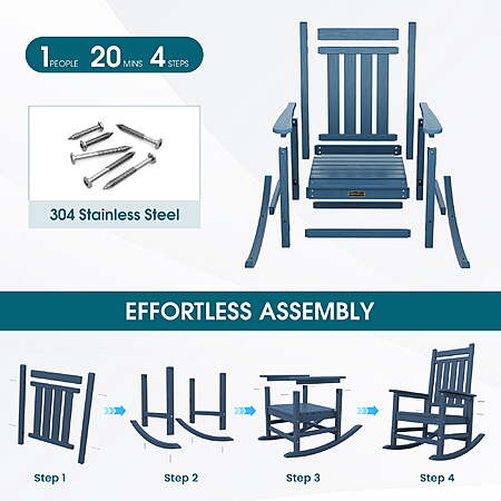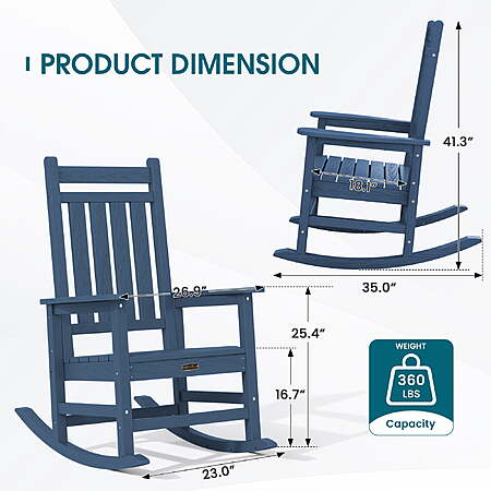 SERWALL Outdoor Rocking Chair, HDPE Patio Rocker for Lawn, Porch, Blue $89.58