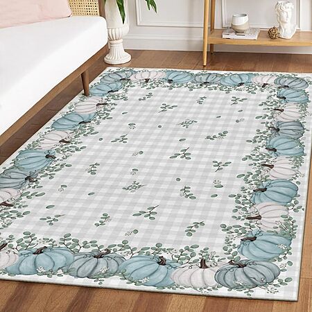 5x7 Artoid Mode Blue Pumpkins Eucalyptus Leaves Non-Slip Area Rug $24.99 + Free Shipping w/ Prime or on $35+