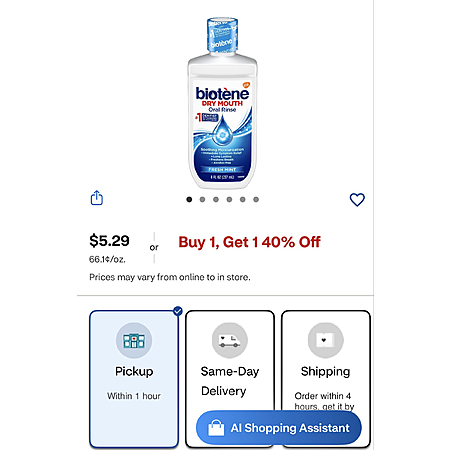 $4 Extra Care Bucks + 2x Biotene Oral Rinse Mouthwash 8 oz $6.46 AC+ Bogo 40% off