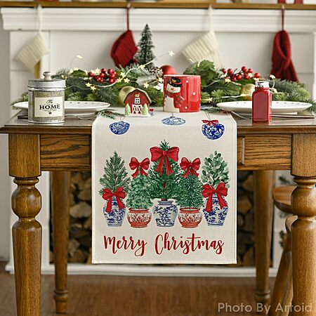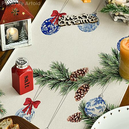 13x60 Artoid Mode Xmas Balls Blue and White Porcelain Merry Christmas Table Runner $4.99 + Free Shipping w/ Prime or on $35+