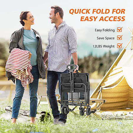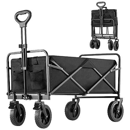 | Product Description: | Experience unmatched versatility with JOINSUN all-terrain cart, designed to simplify your life on any surface. Its all-terrain wheels effortlessly navigate parks, beaches, and trails, while the 360-degree rotation and locking front wheels ensure smooth handling and stability. The adjustable handle makes it comfortable for users of all heights, and the two drink holders add a touch of convenience to your outings. With a generous storage space (29.13"D x 18.50"W x 26.57"H), you can easily carry everything from sports gear to picnic supplies. Lightweight, foldable, and built with durable materials, this cart is perfect for camping trips, family adventures, or everyday errands. Combining practicality with a sleek design, it’s the ultimate transport solution for any lifestyle. Smart Terrain Adaptation: Tackle city streets or wilderness trails with all-terrain wheels that rotate 360° and lock for stability. Perfect for uneven sidewalks or off-road adventures. Unshakable Durability: The 600D Oxford Cloth construction supports 220 lbs of gear, resisting wear and tear from daily use or rugged environments. Universal Ergonomics: An adjustable handle accommodates all users, paired with dual beverage pockets to keep drinks handy during hikes, festivals, or shopping sprees. Spacious & Versatile: Generous 29.13”D x 18.50”W x 26.57”H dimensions fit everything from luggage to gardening tools, streamlining chores or leisure activities. On-the-Go Simplicity: Lightweight, foldable design slips into tight spaces, ideal for apartment living, tailgating, or weekend getaways—no assembly required. |