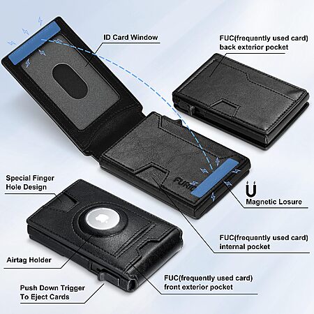 furidRFID Blocking Minimalist Leather Wallet w/ AirTag Holder (Black or Brown) $9.99 + Free Shipping w/ Prime or on $35+